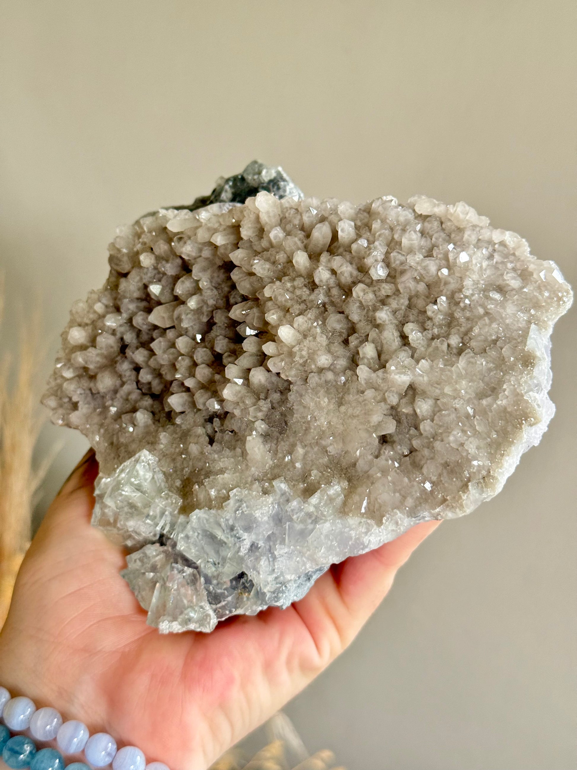Blue Cubic Fluorite on Smoky Quartz Heart Cluster