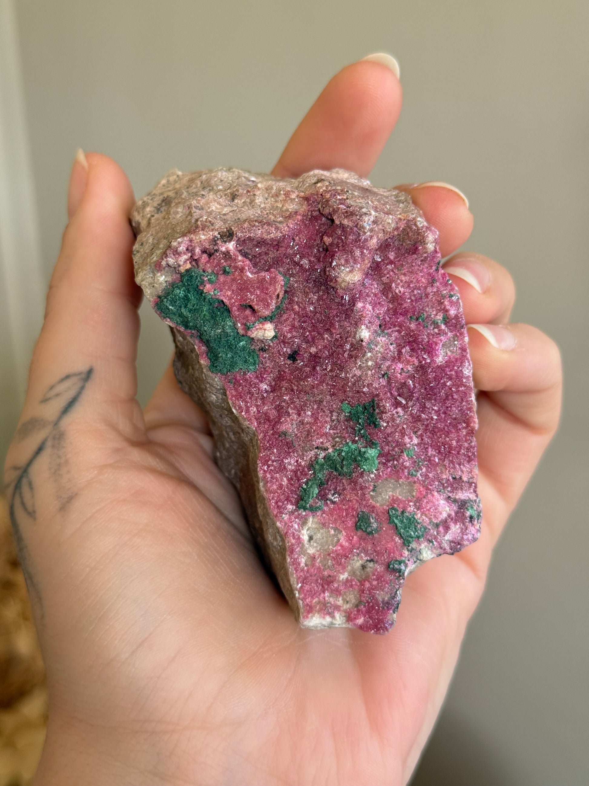 Cobalt Calcite with Malachite