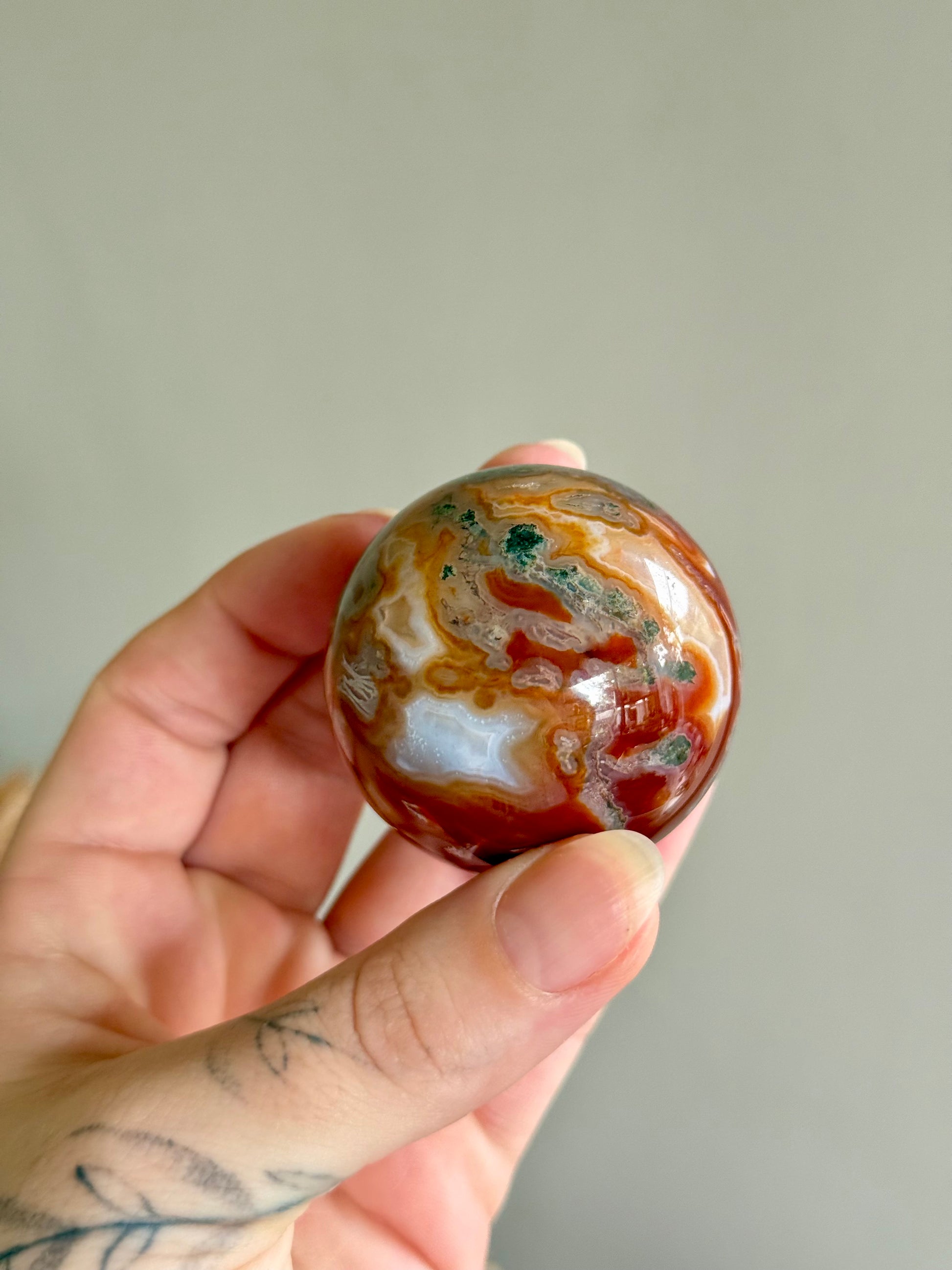 Moss Agate and Carnelian Sphere