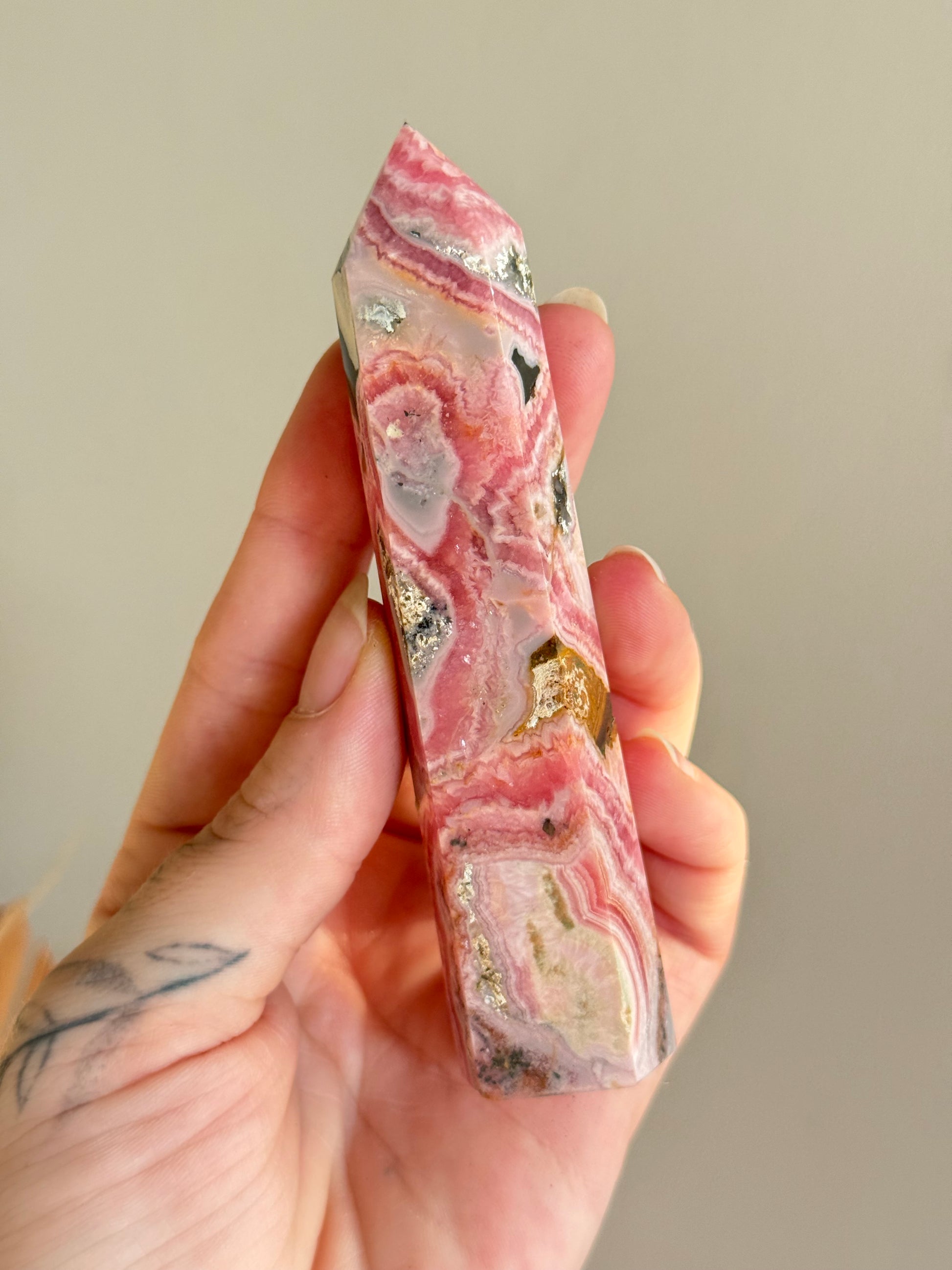 Rhodochrosite with Pyrite Point